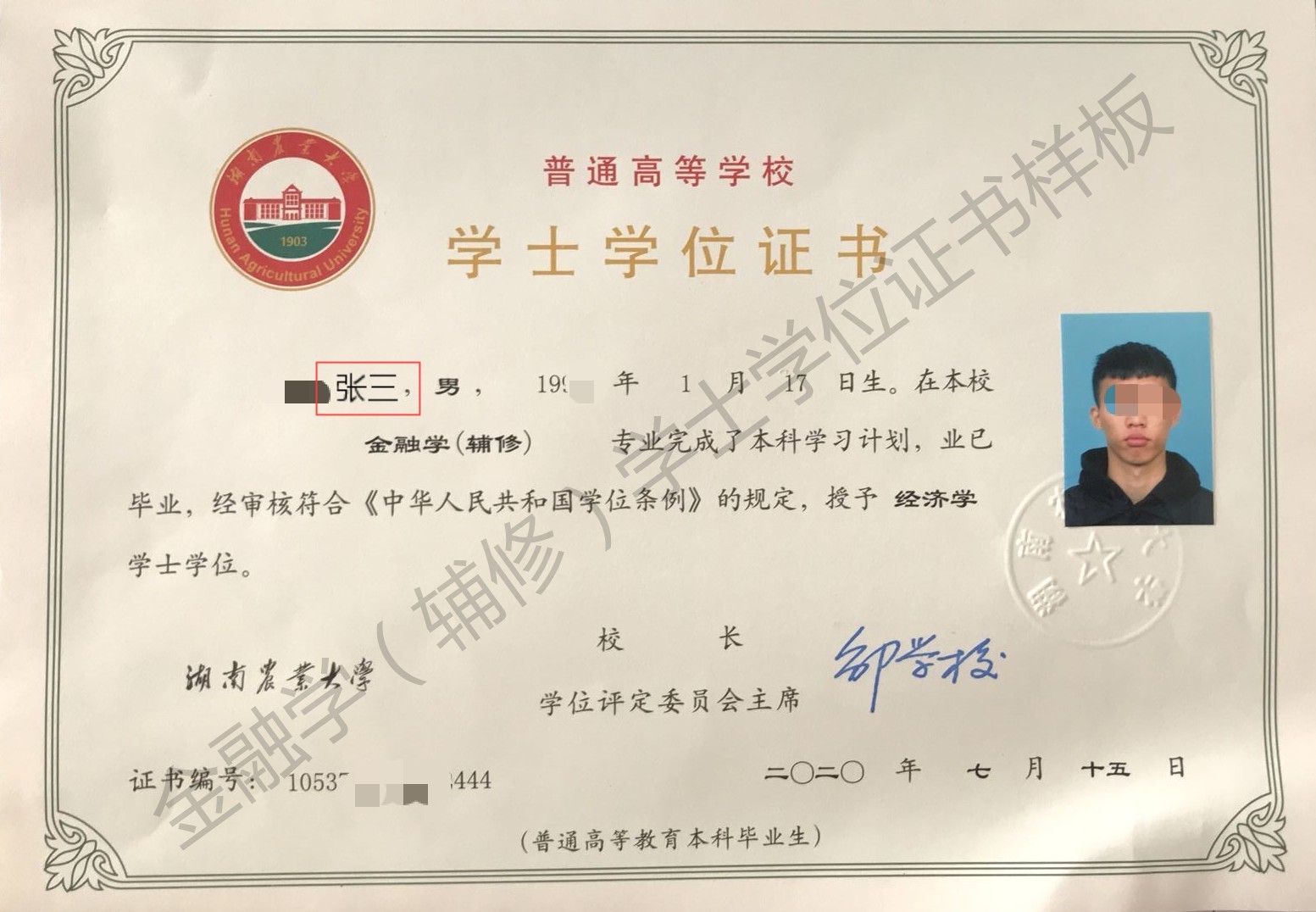 修满60学分,颁发金融学(辅修)专业证书;通过论文答辩后授予湖南农业大学经济学学士学位证书。